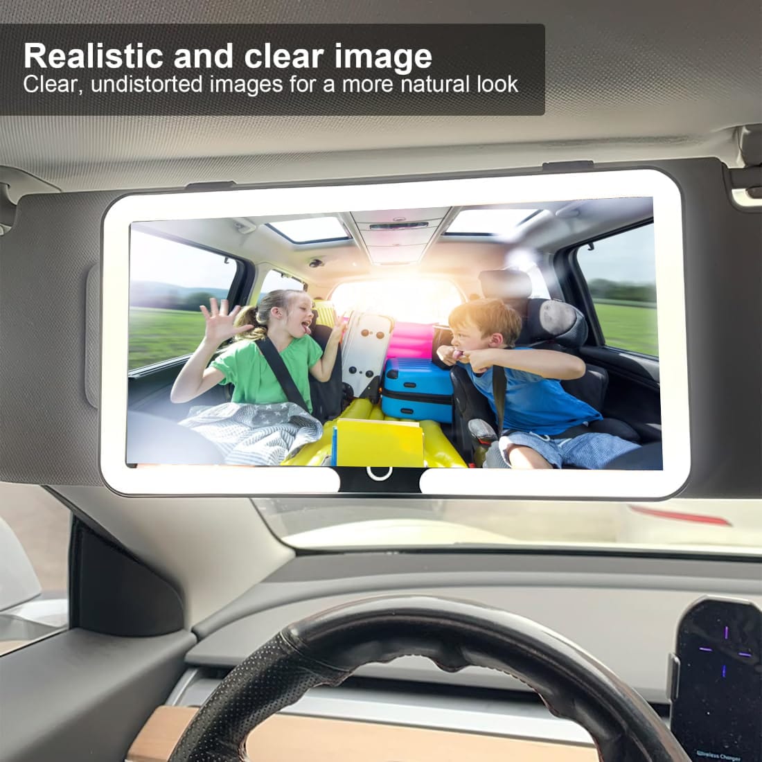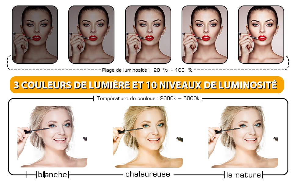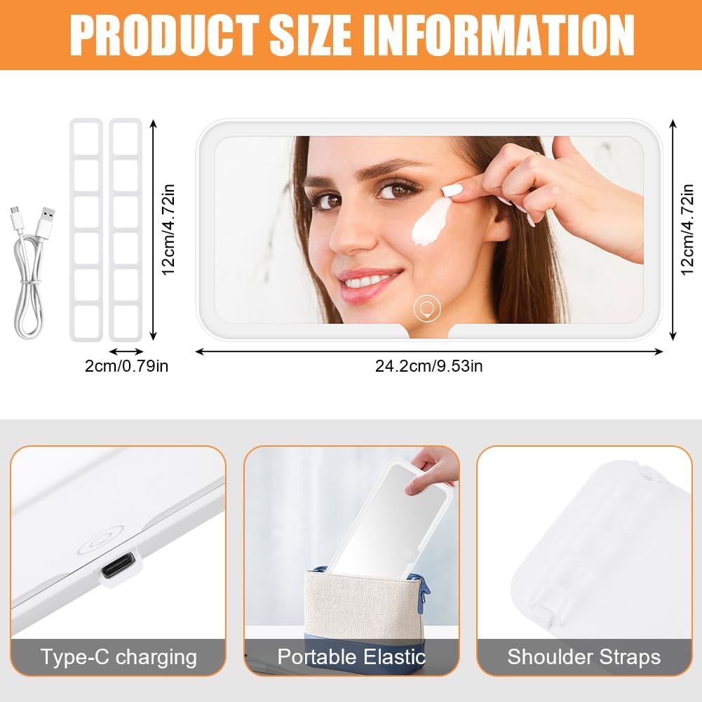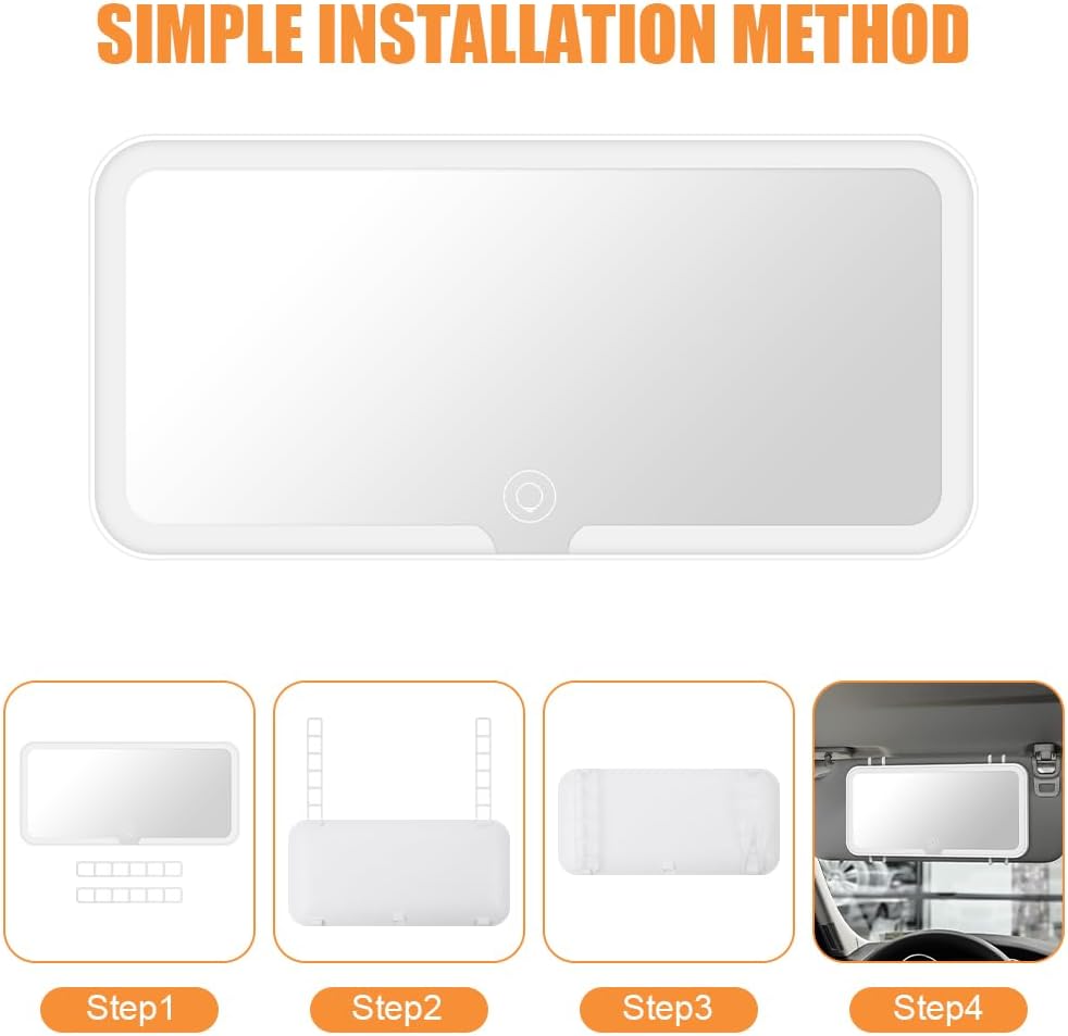 Ce miroir Led rechargeable vous permettra de garder partout votre rayonnement et maquillage à la perfection. Fabriqué avec un verre miroir Haute Définition 4K vous fournira un environnement de maquillage clair et grand et une meilleure expérience de maquillage. Grâce à ses caractéristiques innovantes, vous obtiendrez des résultats impeccables pour votre maquillage où que vous soyez. Les LED réglables en couleur offrent une luminosité impeccable pour votre visage. Avec 3 modes d’éclairage blanc,jaune et combinaison des deux,et une fonction de réglage de la luminosité en continu, vous avez un contrôle total sur l’éclairage que vous souhaitez. Il suffit d’une simple pression prolongée pour ajuster la luminosité selon vos besoins. Doté d’une batterie au lithium, ce miroir peut être rechargé grâce à sa fonction de recharge USB où que vous soyez : dans la voiture, à la maison, au travail ou en voyage. Vous pourrez profiter jusqu’à 8 heures d’utilisation continue avec une luminosité à 100%. Ce miroir Led vous permettra de voir tout ce qui se passe aux sièges arrière, notamment avec des enfants en bas âge, votre mari peut se raser en cas de besoin. Facile à installer avec les sangles derrière le miroir. Dimensions : notre miroir de maquillage de voiture mesure environ 23,5 x 12,7 cm, ce qui convient à tous les pare-soleil ou dossiers de siège des voitures. Design compact et léger, ne prend pas de place supplémentaire à l’intérieur des voitures. Il est sûr, il n’affecte pas le pliage du pare-soleil. Vous pouvez également l’installer partout où vous en avez besoin, comme les appuie-têtes de siège, les tableaux de bord, les fenêtres, etc., adapté pour les jeunes femmes et les femmes qui aiment le maquillage et les cosmétiques. Cadeau idéal à l’occasion de saint Valentin, anniversaires, achat de voitures et autres en particulier pour les jeunes femmes et les femmes qui adorent les voitures et le maquillage.